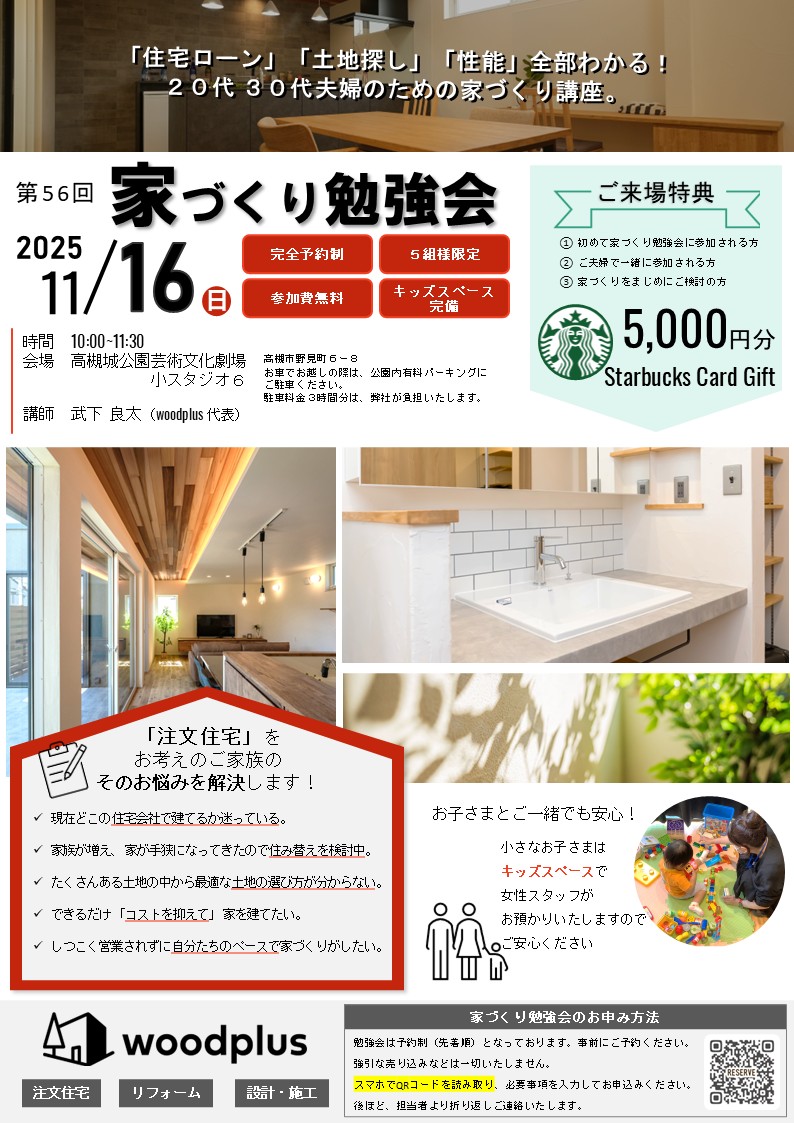 勉強会では、専門用語をできるだけ使わず、実際の事例や失敗談も交えながら、わかりやすくお話しします。どんな些細なことでも、遠慮なく質問してくださいね。「家づくりで後悔してほしくない」 そんな想いで、この勉強会を開催しています。