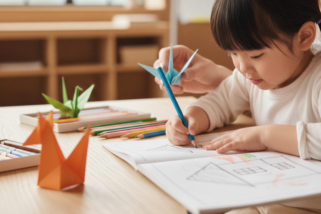 「今日は何をして遊ぼうか?」と相談しながら、折り紙をしたり、お絵描きをしたり、時にはブロックで大作を作ったり。