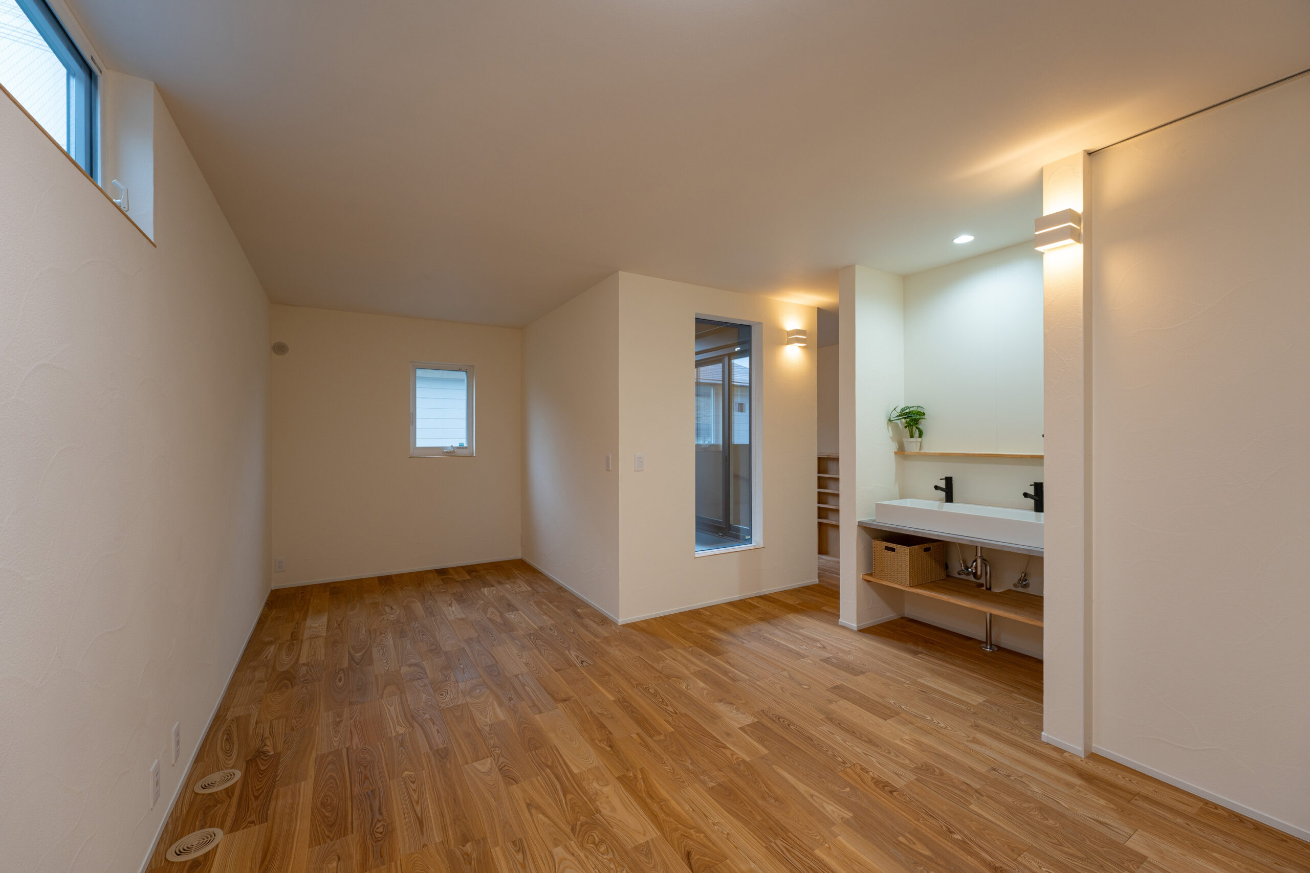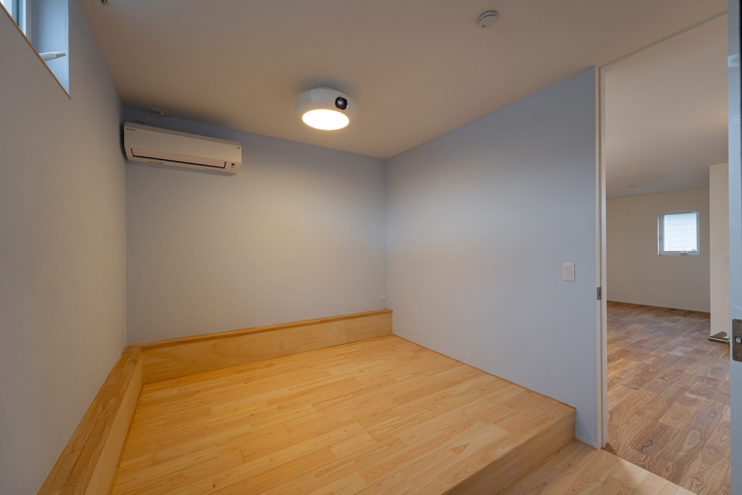2階には将来2部屋に分割できる多目的ルームを配置。今はご家族みんなで過ごす空間として、成長に合わせて個室へと変化していきます。