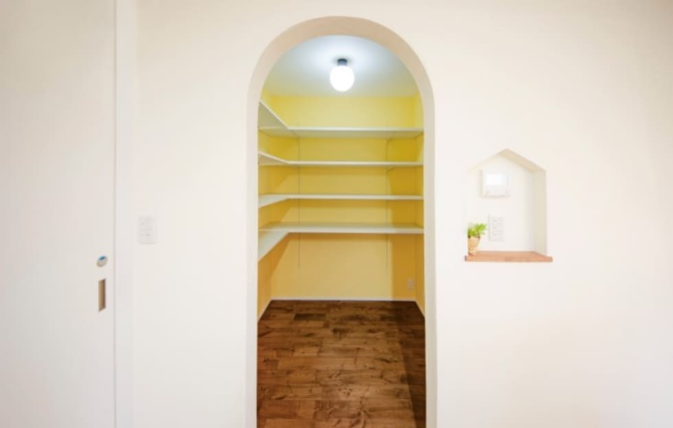 Rの垂れ壁は直線的なデザインに比べて部屋全体に柔らかくかわいい印象を与えます。